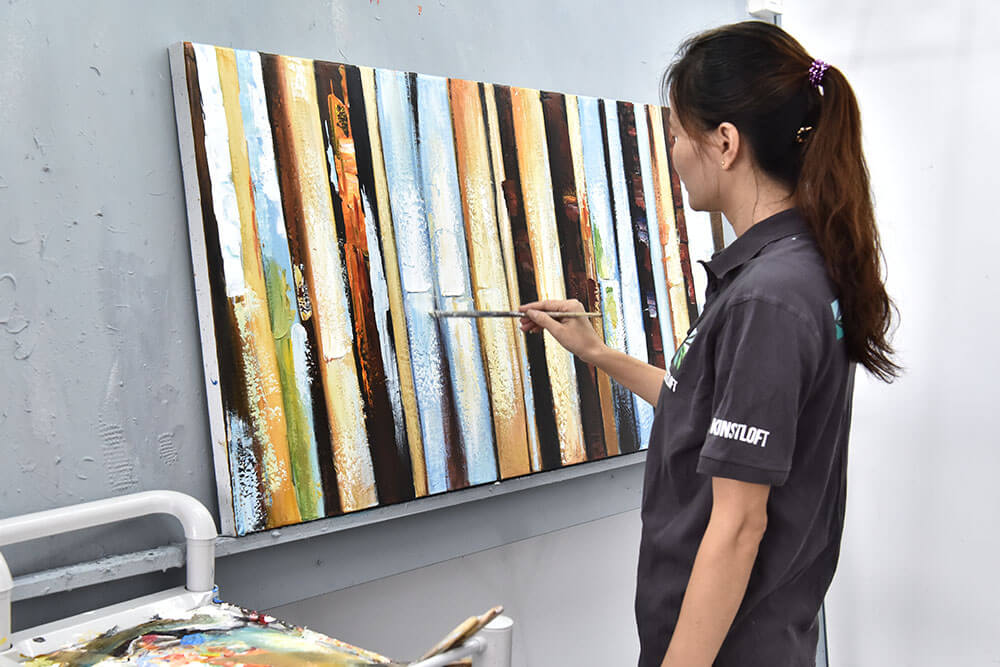 Însoțiți-ne în procesul de realizare a picturilor noastre acrilice exclusive și descoperiți artiștii din spatele pieselor unice pictate manual.