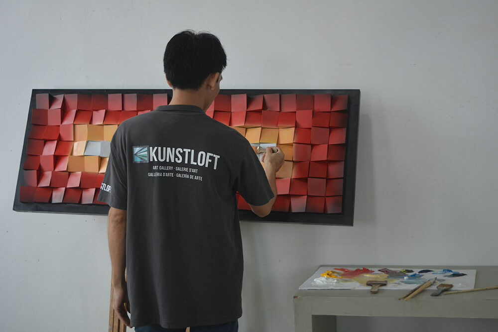 Nimic nu-i oferă artistului Aiden Dang la fel de multă plăcere decât să țină placa de metal netedă în mâini și să-și imagineze motivul terminat în minte. Născut în China, artistul și-a dat seama rapid că trebuie să iasă din mulțime prin creativitatea sa pentru a avea succes. El reușește să facă acest lucru cu tablouri metalice în format 3D, prin care transformă motivele abstracte în culori strălucitoare.