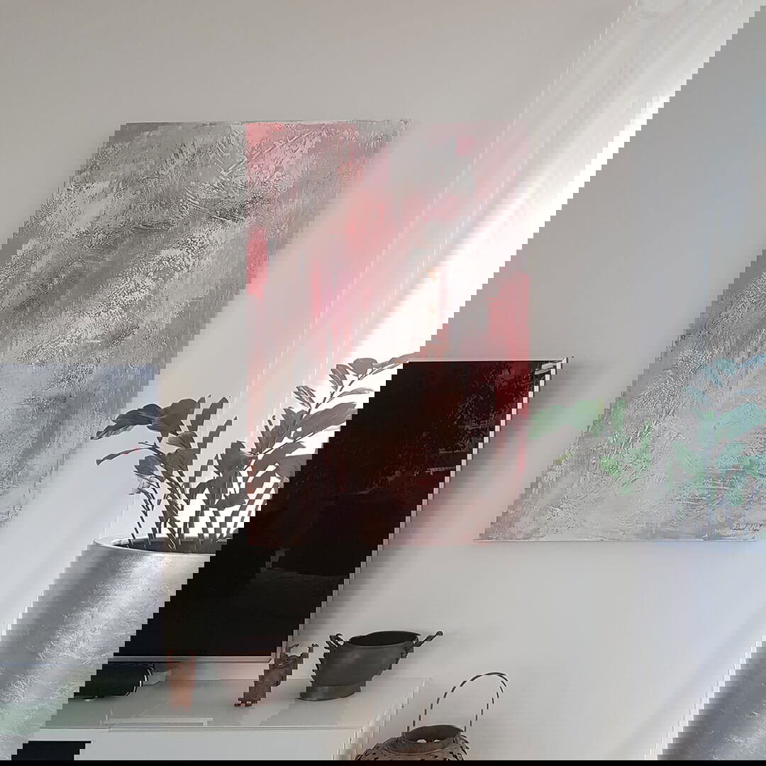 Motiv: Acryl Gemälde | Rot, Rosa; Silberglanz | 80x120cm